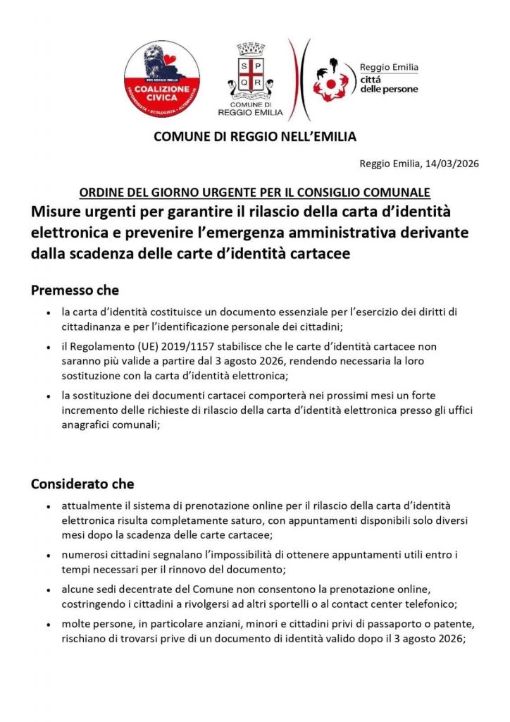 Immaginate di dover rinnovare la carta d’identità e sentirvi rispondere: “Torni tra un anno o due”. Non è uno scherzo, è quello che sta succedendo a Reggio Emilia. Con il dirigente Bevilacqua che conferma 14.000 richieste pendenti, siamo di fronte a un collasso dei servizi ai cittadini.