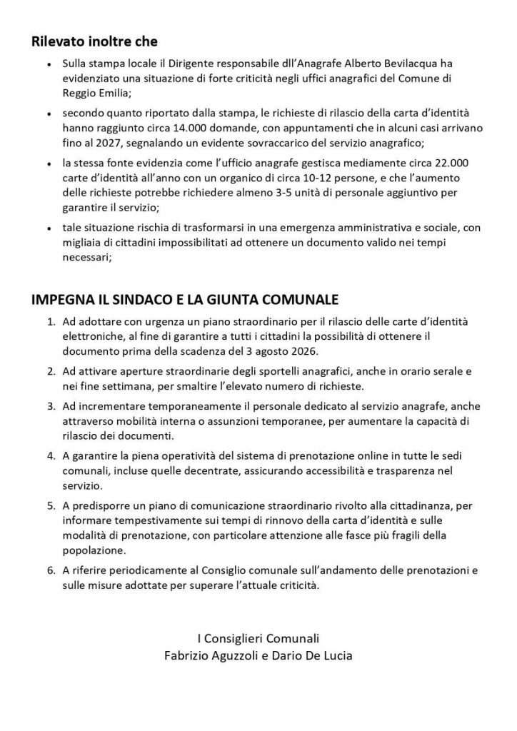In questi giorni ho ricevuto decine di segnalazioni. Famiglie che rischiano di saltare le vacanze perché non hanno il documento per i figli, cittadini che non possono aprire un conto corrente o firmare un contratto. È una situazione indegna per una città che si professa efficiente.